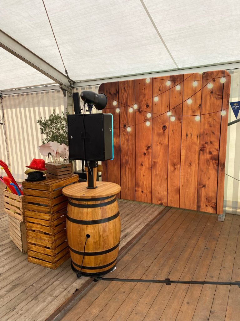 Unsere Fotobox steckt in einem echten Weinfass und verbindet rustikalen Charme mit neuster Technik.